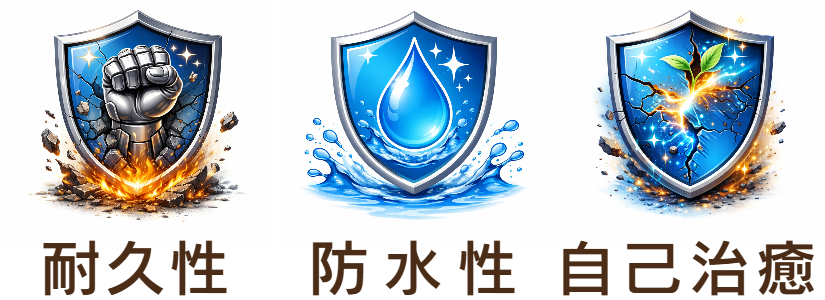 製品群によっては、将来発生するヘアクラックや微細なひび割れに対しても反応が継続し、再びシールする性質があるとされています。たとえばADMIX系は最大0.5mmまでのひび割れに対応します。